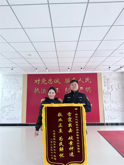 近日,科尔沁路派出所成功破获一起系列电动车电瓶盗窃案件,抓获犯罪嫌疑人3名,追回被盗电瓶4块,为群众挽回经济损失共计1000余元。案件告破后,受害群众代表专程来到派出所,将一面印有“雷霆出击 破案神速 敬业正直 为民解忧”的锦旗和手写感谢信送到办案民警手中,用最质朴的方式表达对民警快速破案、倾力挽损的感激之情。
