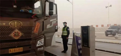 “风沙天气能见度低,一定要安全驾驶,减速慢行。”检查站的民警辅警站在风里,一遍遍叮嘱每一位路过的驾驶员。风沙弥漫中,警服早被沙土染成了土黄色。