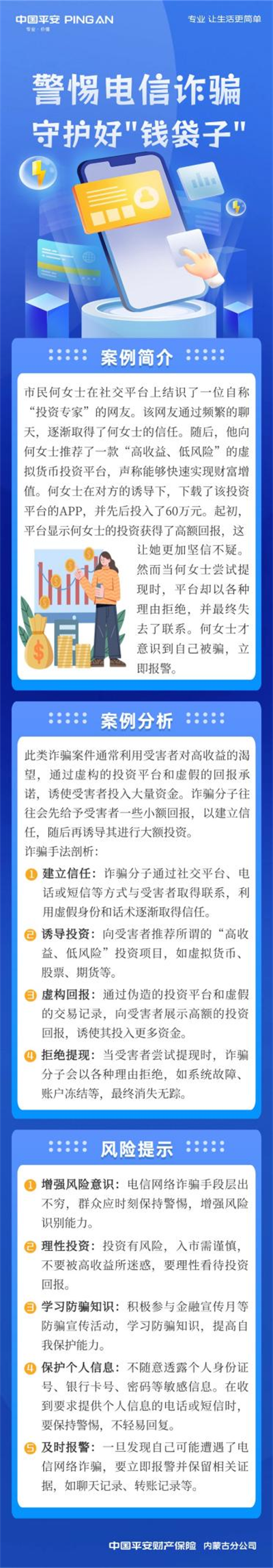 【平安产险内蒙古分公司3·15专刊 —以案说险】警惕电信诈骗 守护好“钱袋子”