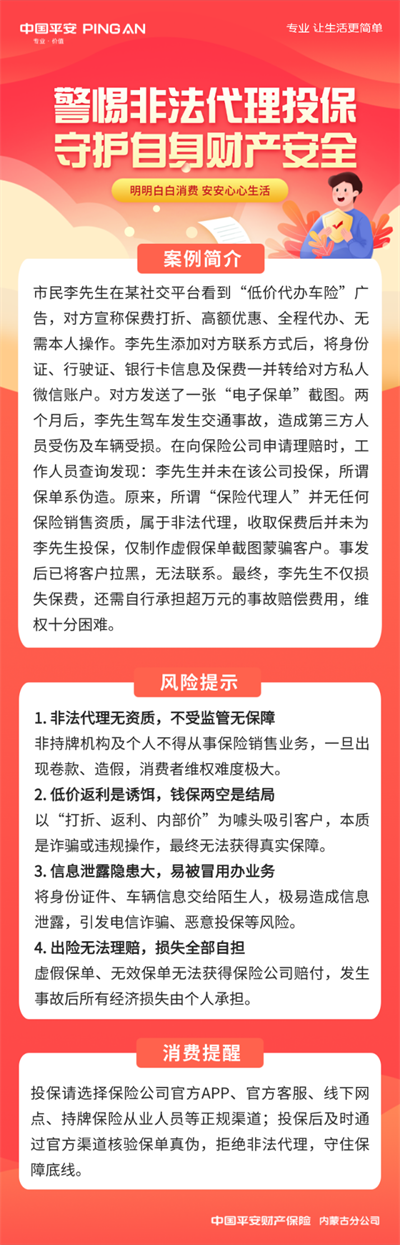【平安产险内蒙古分公司3·15专刊 —风险提示】警惕非法代理退保 守护自身财产安全