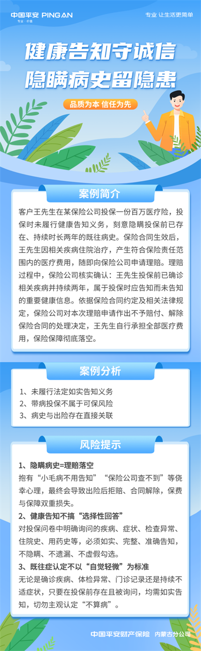 【平安产险内蒙古分公司3·15专刊 —以案说险】健康告知守诚信 隐瞒病史留隐患