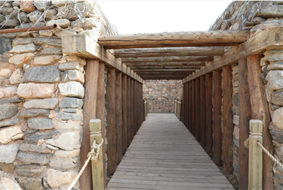 鸡鹿塞瓮城到主城的廊道,彰显独特的防御布局。