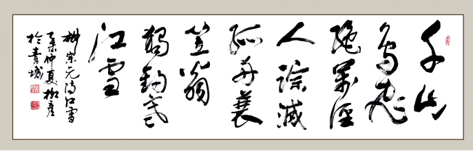 书如其人兮,观书而知品性;人凭底蕴兮,书乃文气酿成。茂霖君自幼酷爱国学,诗词曲赋兼通;大学更习中文,杏坛执教为生。滿腹学养,倾注翰墨;一腔才气,挥洒笔锋。遂有大美洋溢,陶然悦人心胸;遂有雅韵灵犀,物我相看敬亭。品君《禅茶一味》,自有“香茗入梦”;驻足《荒野云楼》,忽见“寒江钓翁”;饮“江波”而欲醉,近“草木”而忘情。何来神形之妙?习书久久为功。废寢忘餐,载熔载冶,千锤百炼,积健为雄。殊贵理论洞明,悟得堂奥其精:临帖读帖并重,主张身体力行;法古而不泥古,创新水到渠成。尤怀蜡炬之德,投身青少书教,不辞奔波劳碌,鼓励提携后生。常云自得其乐,乐此翰苑躬耕,耕者得偿夙愿,愿君大器更成!