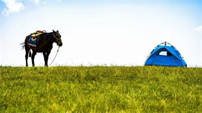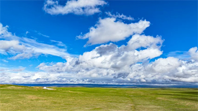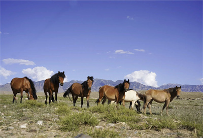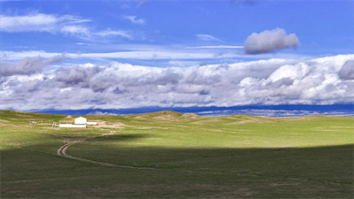 远山下的草原,湛蓝天空上的云卷云舒,是牧人和马儿的天堂。(摄影:达布西拉图)