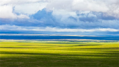 阳光透过云层,金色的光洒向贺兰山下的草地,光影之间,是远方和诗。(摄影:达布西拉图)